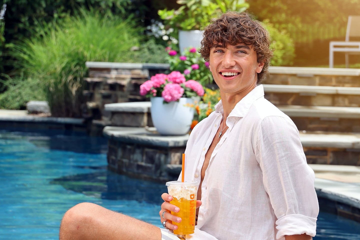 In the Dunkin’ spot, Casalegno lounges poolside with a “Golden Hour Refresher” in hand, casually stating that his skin tone is thanks to genetics. He adds that his color analysis came back as “literally golden summer,” concluding with the line: “If sipping these refreshers makes me the king of summer? Guilty as charged.”